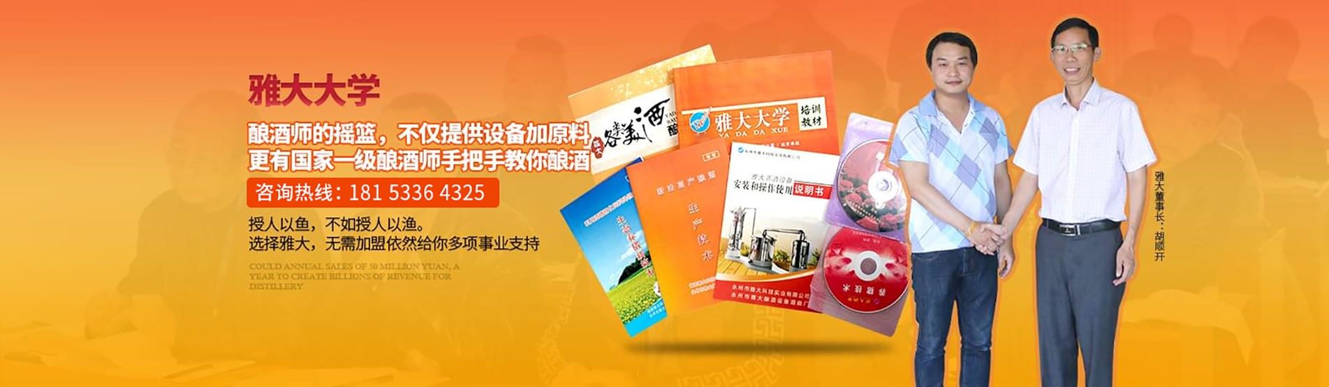 永州市雅大科技實業有限公司成立于1999年,位于湖南省南部國家歷史文化名城—永州市,是一家集釀酒技術研究、釀酒設備、釀酒酒曲生產銷售于一體的國家高新技術企業。擁有標準房、科技培訓樓13500m7,公司連續十年被省、市江商局評為重合同守信用單位,榮獲201 7年中國釀酒設備行業新標桿企業獎。可提供釀酒項目整體解決方案,包括釀酒項目選擇、酒廠規劃設計、釀酒技術培訓,酒類產品設計、包裝瓶(盒)設計、酒品營銷策劃、協助辦理資質、編制可行性報告等方面。